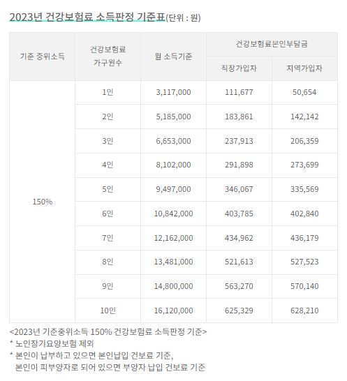 - 소득요건 : 건강보험료 기준 중위 150% 이하
