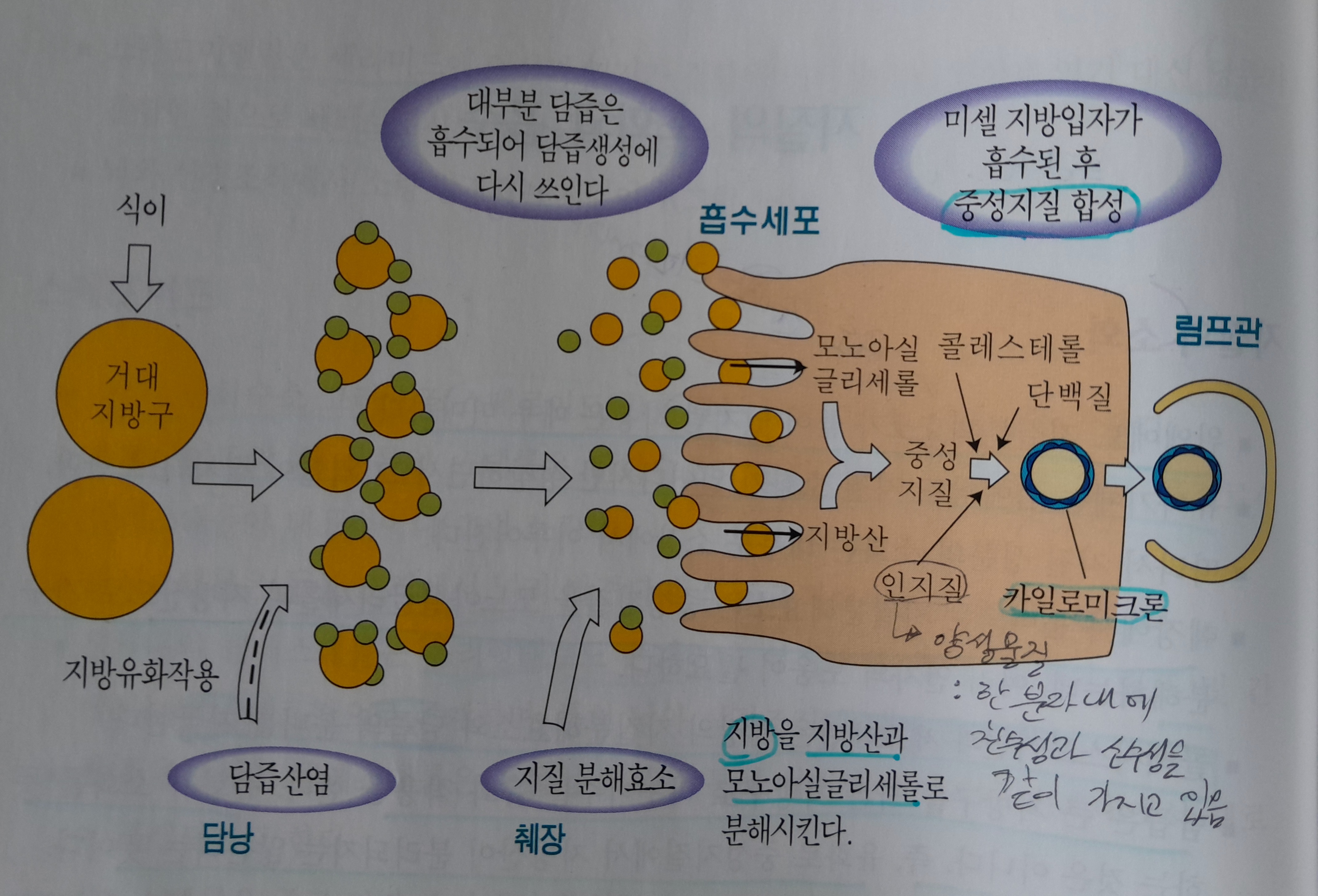 지질이 체내에 들어가기 위해서는 여러 분해효소들의 소화 과정을 걸쳐 흡수 가능한 형태로 바뀌어 흡수될 수 있습니다. 흡수된 지질들의 수송하여 여러 가지 대사과정을 걸치게 됩니다. 이러한 지질의 소화와 흡수, 수송 등을 자세하게 설명하고자 합니다.
